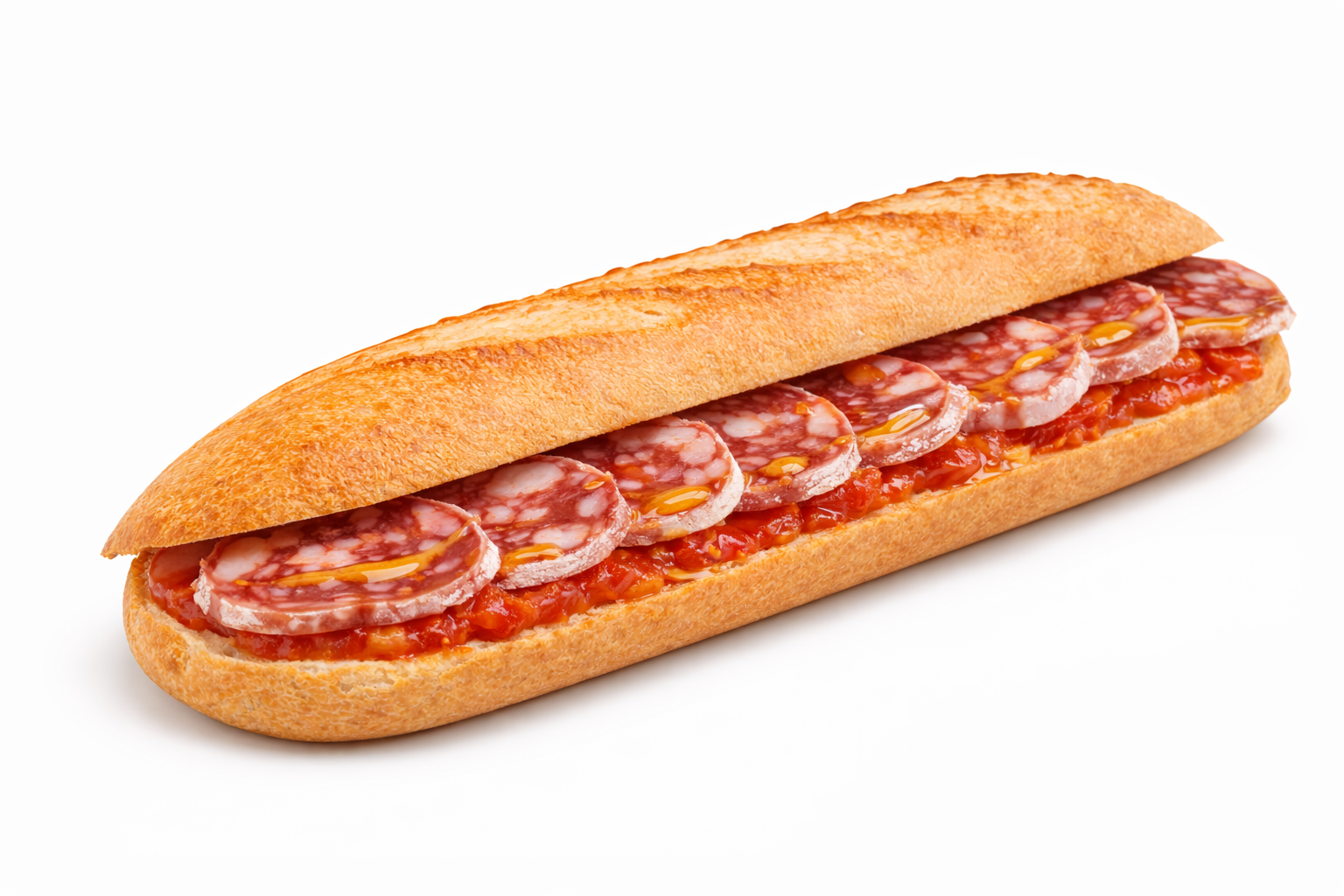 Lonchas de fuet catalán con toque de aceite y tomate.